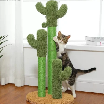 Indoor Cactus Cat Scratching Post with Tall Poles and Dangling Ball Toy